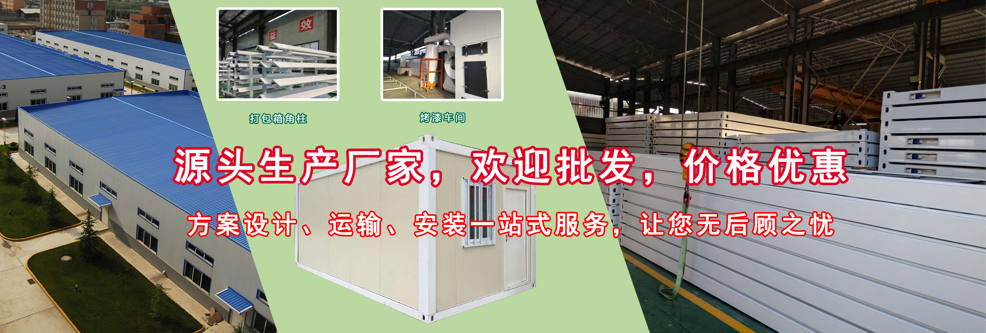 文創鋼結構工程有限公司專業生產,活動板房,集裝箱房,鋼結構,輕鋼別墅,移動廁所,活動圍墻,巖棉板,是一家集設計、生產、建造、營銷一體化的專業智能化集成房屋獨資企業,服務市場包括珠三角廣州、深圳、東莞、佛山、中山、肇慶,咨詢合作執線: 139 2872 2202